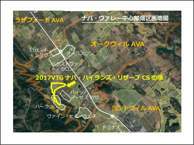 畑:2017 年はオークヴィルの西丘陵、銘醸畑が集まるエリアにある有名ワイナリーの自社畑から、長年の信頼とコネクションゆえに調達することができた葡萄から数量限定で造られる希少なワインです。