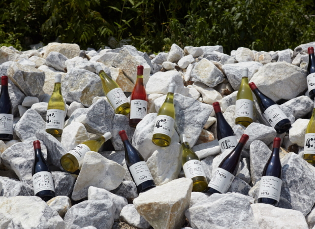 わずかにオレンジがかった白濁したピンク色。南国を想わせるトロピカルフルーツやラズベリーなどの可愛らしい赤系果実の香り。初物のスモモや木苺を食べているような甘さと酸のバランス。微発泡により爽快感がプラスされたドライなペルランです。tetta のブドウ品種の中でも特に樹齢の高い安芸クイーンとMBA を主体としました。どちらもtetta の歴史を語る上でとても重要なブドウ達です。